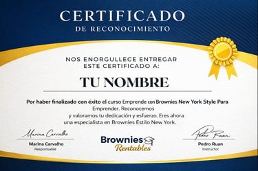 Al acceder hoy a EMPRENDE CON BROWNIES NEW YORK STYLE, recibirás: